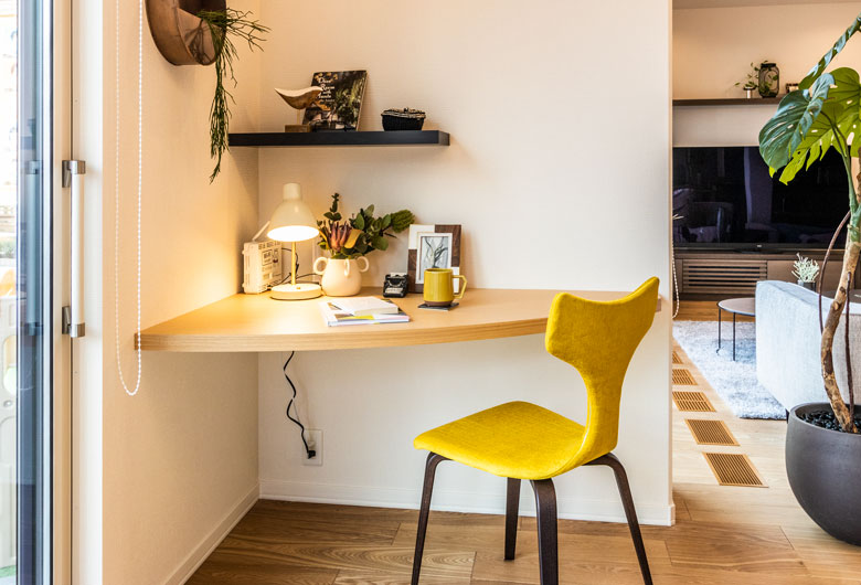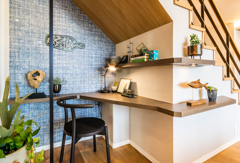 癒しや心地いいインテリアとして注目が集まる植物由来のボタニカルインテリアを用い、どこにいても緑を感じられる、居心地の良いナチュラルモダンな空間を演出しています。そして、セキスイハイムで県央初、展示場見学だけでなく家づくりの基礎知識などを映像を見ながら学べる最新の体感型モデルハウスです。トレンドである玄関手洗い・リモート対応デスク・自給自足などを実現した展示場となっております。家づくりを楽しみつつ、安心できるお住まいをご提案させていただきます。ぜひ展示場でご体感ください。