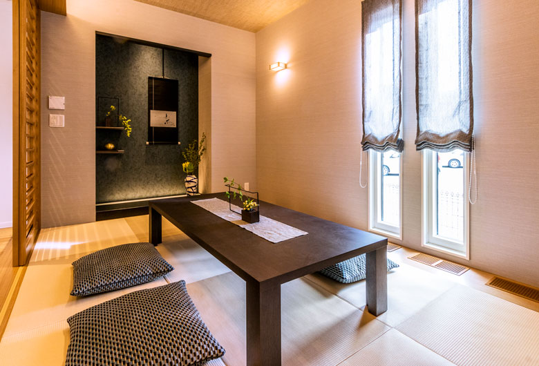 展示場全体のディスプレイは、あえて説明無くとも使い方や生活シーンが想像できる、リアルな演出設えになっています。お客様には全てのコーナーに座って、空間を体感していただく事をお勧めいたします。