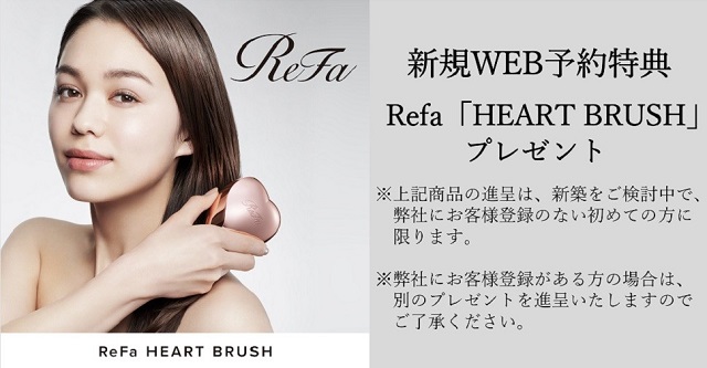 弊社HPよりWeb予約の上、初めて積水ハウス展示場にご来場いただいた方には、Refa”HEART BRUSH”をプレゼント!