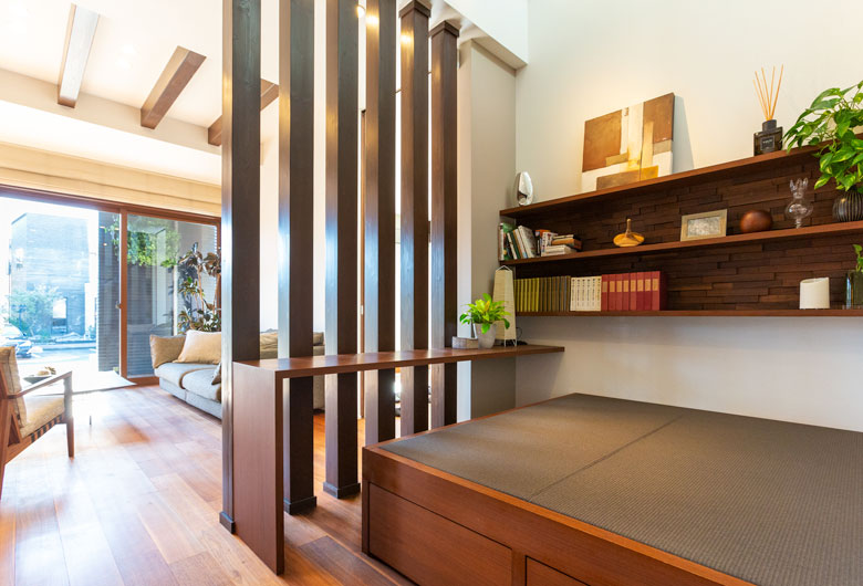 読書や昼寝など多目的に利用できる居心地の良いスペースです。自然光を取り入れた窓辺の居場所は、リラックスするのに最適です。