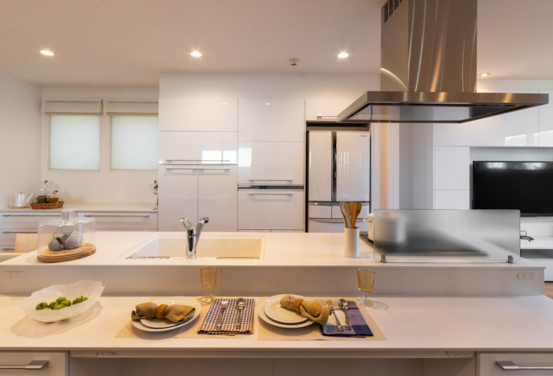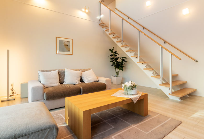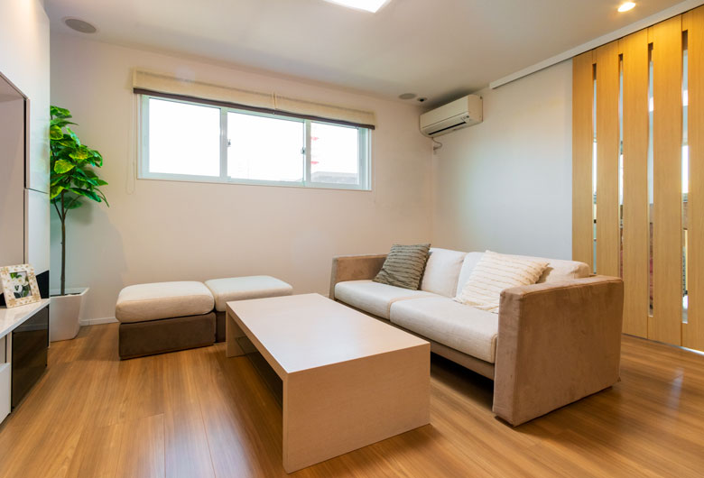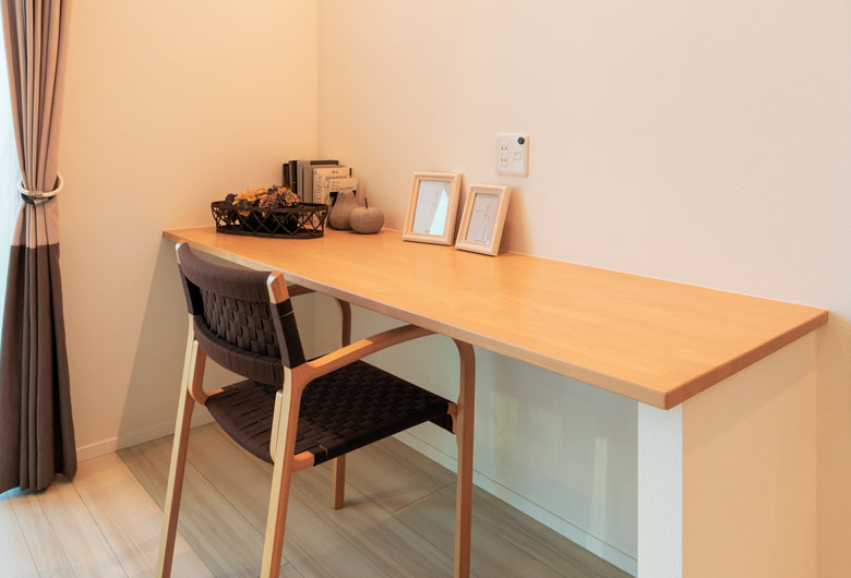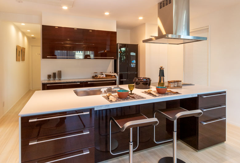 直線が生み出すシャープでシンプルな佇まい。室内も、外観のイメージに合わせたスタイリッシュな空間となっています。1階リビングは、吹き抜けや大きな窓を備えた、明るく開放感あふれる設計。DKは、1、2階それぞれ異なるイメージのキッチンプランをご提案しています。また、デザインと機能性を兼ね備えた、ドア、シューズボックス、階段などのオリジナル住宅設備も必見。展示場にて、是非ご覧ください。