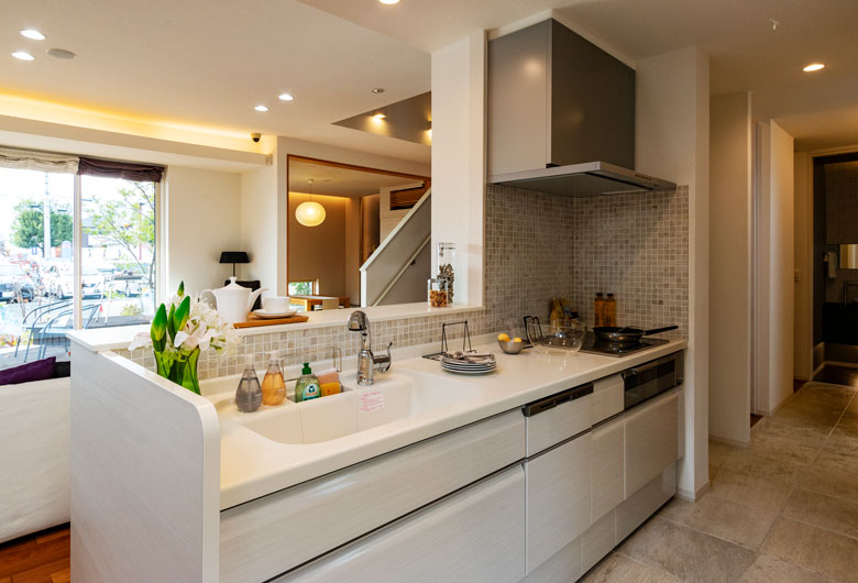 深い軒と厚みの外壁により重厚感のある外観。室内は天井高2m72cmのリビングと吹き抜けを設け開放感のある1階を演出。居心地の良いリビングにて寛ぎを。回遊動線をつくり家事のし易さやコロナ感染症対策にも配慮。ZEH住宅にも標準仕様にて適合。断熱性能を高めたお住まいにて家計にも優しくなる3電池(太陽光発電・リチウムイオン蓄電池・燃料電池)連携住宅も商品化。自給自足のお住まいを実現してみませんか?