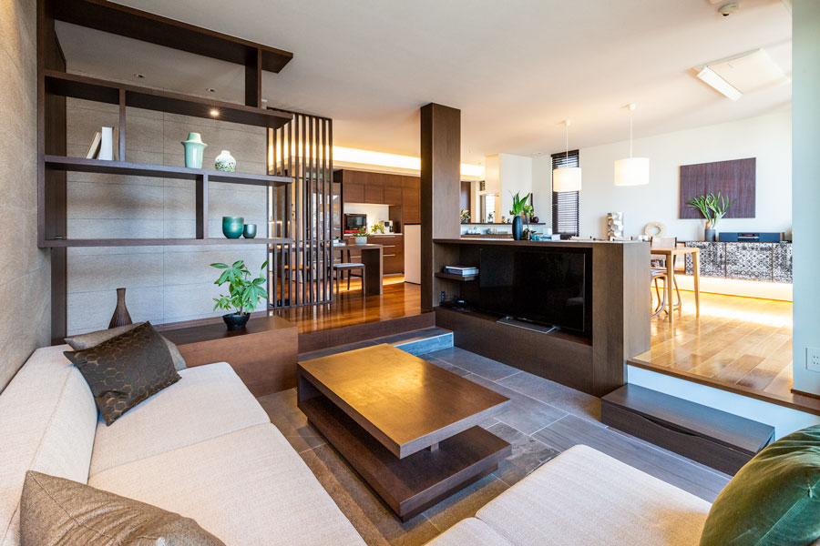 圧倒的な設計自由度で、住みやすさを追求した3階建て二世帯住宅の間取りです。単世帯の方にも二種類のキッチン、スタイルの違うリビング、お風呂、インテリアなどご参考にして頂けます。親世帯スペースでは、シューズクローク、床を下げたリビング、階段下の活用、ホテルをイメージさせる寝室がご好評いただいております。共働きの子育て世代をイメージした子世帯スペースでは、家事動線や、収納の工夫、+αの空間を楽しむご提案をご覧いただけます。