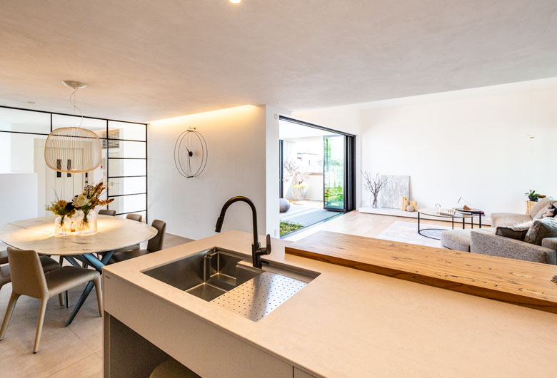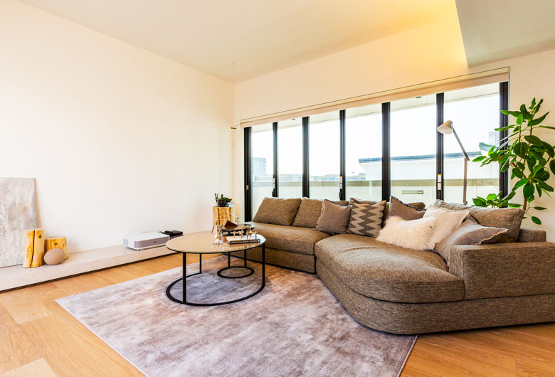 重鉄制震構造の頑丈な躯体だからこそ可能な、大開口・大空間で開放感と広がりのある空間を演出。