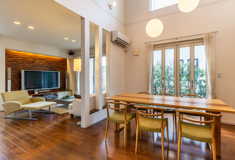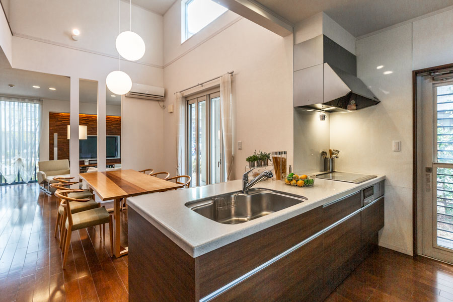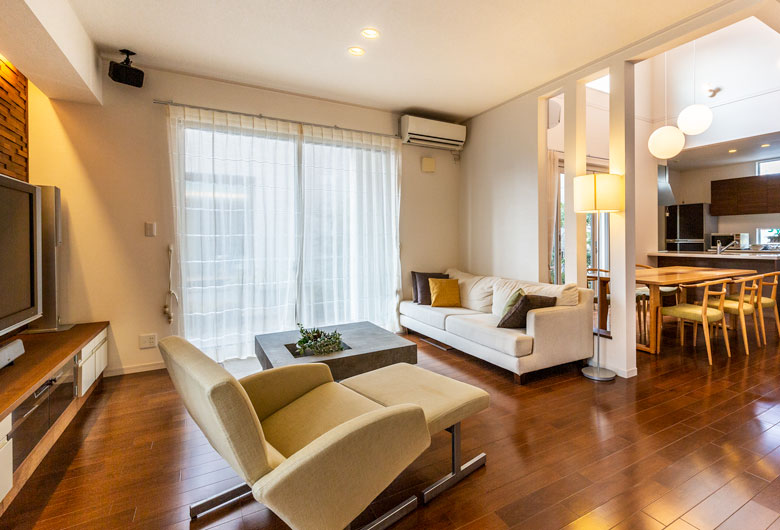 シンプルで心地良い、落ち着きと安らぎのある住空間。白とダークな木目を中心とした、ナチュラルで気持ちの良い住まい。洗練された室内空間に、ご家族の上質な時間が流れます。