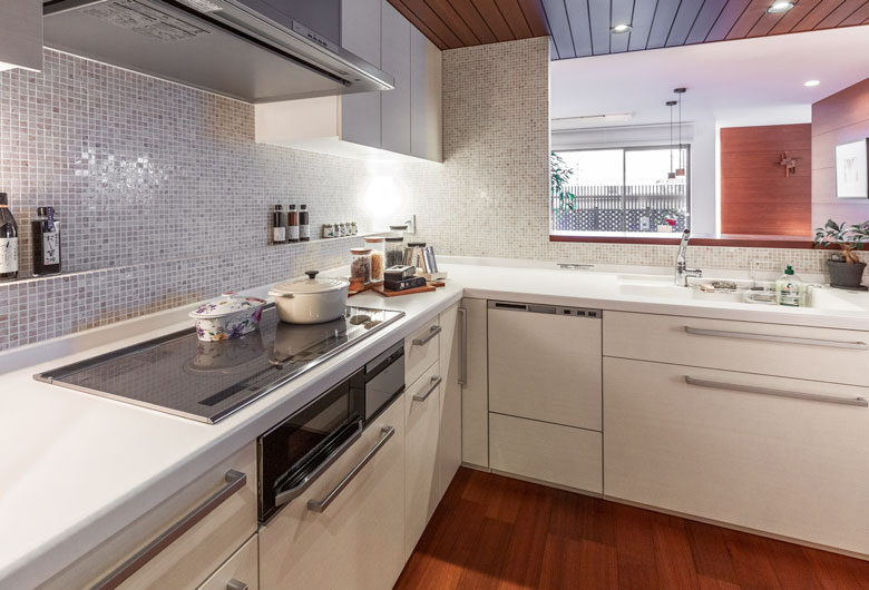 1階は落ち着いたウッド調の、大人の空間で、自然とみんながくつろげるダウンフロアリビングが見所です。2階は対象的にさわやかで明るいオープンなダイニングキッチンが中心です。1階と2階をゆるやかにつなぐスキップフロア、開放感が最高に気持ちいい屋上空間を、ぜひ体験しにいらして下さい。