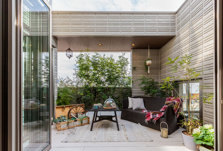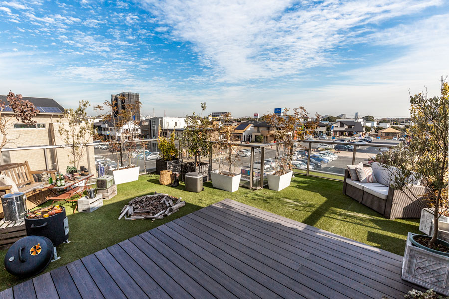 特徴的なLDK、開放的なアウトドア空間、圧倒的な災害への強さを実現