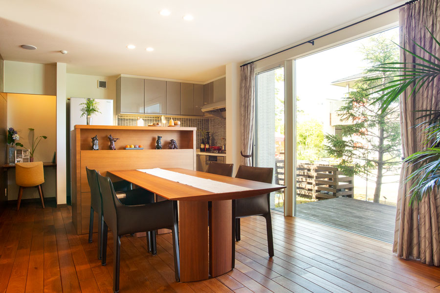 内観は、住友林業オリジナルのビッグフレーム構法による《大空間》《コーナーサッシ》、統一された《木質上質空間》を体感いただけます。