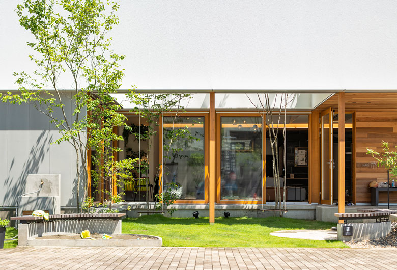 内と外の関係性。どう繋がるか、どう結合するかを考え、建物だけでなく外構にもこだわったモデルハウスです。