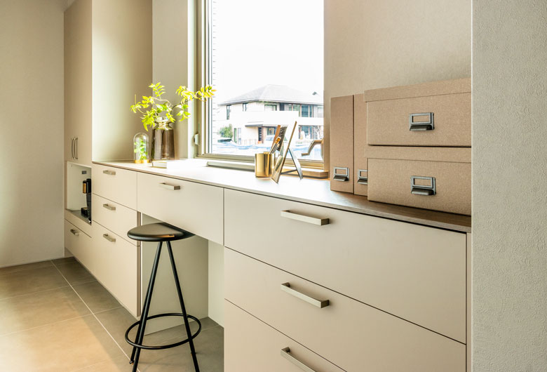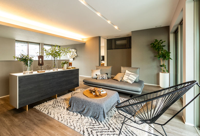 積水ハウスの最新技術を屈指した空間提案と上質なインテリアが、他にはない魅力を演出致します。まず初めにリビングのソファにお座り頂き、空間を体験してみて下さい。