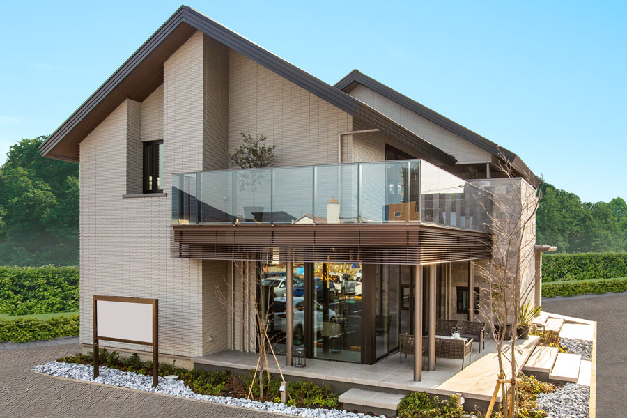 積水ハウスのフラグシップモデルである「イズ・ステージ」重厚感と洗練されたデザインを兼ね備えた展示場となります。6寸勾配の大屋根と当社オリジナル外壁「ダインコンクリート」の邸宅感溢れる外観です。約37帖のLDKと合計9mスパンの天井高のコーナーサッシにより開放感のある空間となっております。大判タイルや絨毯を使用した内装、キッチン裏の充実したバックヤード、昨今需要の高まるリモートワーク可能の書斎スペース、デザイン性の高いリビング階段など上質な雰囲気を彩るインテリアも参考にして頂けます。