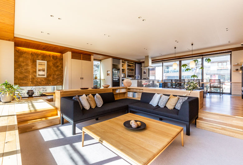 大空間・大開口と繰り返し起こる巨大地震に耐える強さと開放感を両立した住まい。