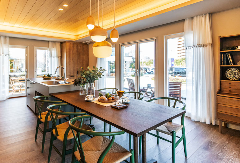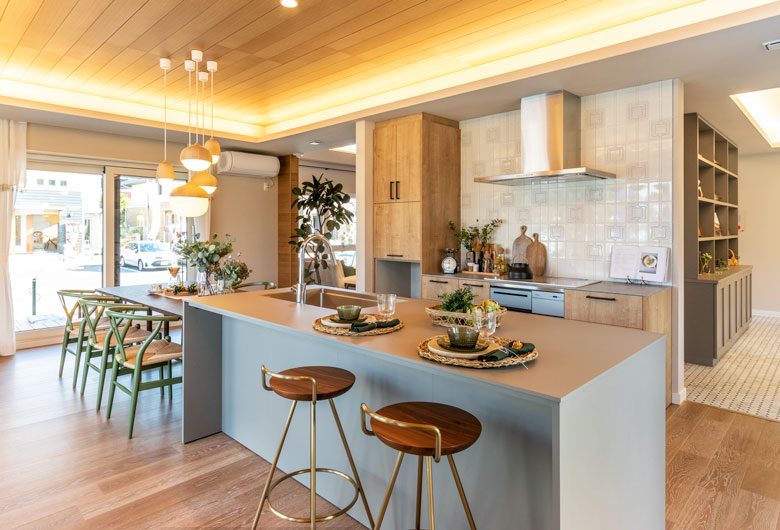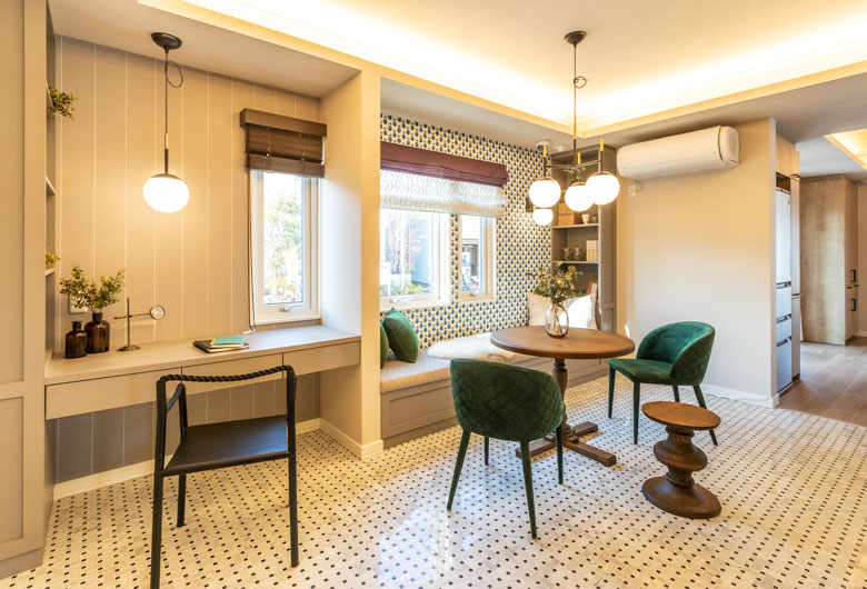 家族で一緒の時間を大事にしたいけど、個人それぞれの時間も大事。そんな家族の希望をこの家なら叶えられます。シャビーシックな大人のインテリアの中に北欧らしい可愛らしさを取り入れたインテリアも魅力です。高い断熱性を誇る木製3層ガラス窓にて大開口実現し、外観デザインのアクセントにしています。(※2015~2025年 オリコン顧客満足度🄬調査 ハウスメーカー 注文住宅 11年連続第1位)
