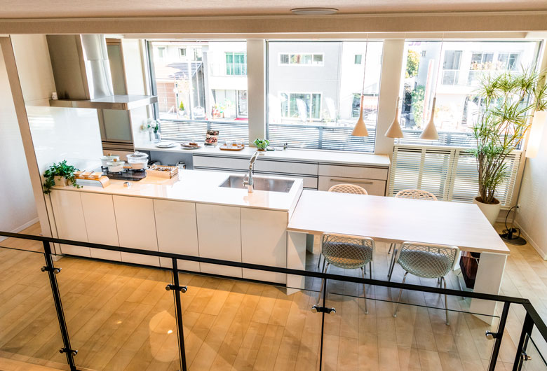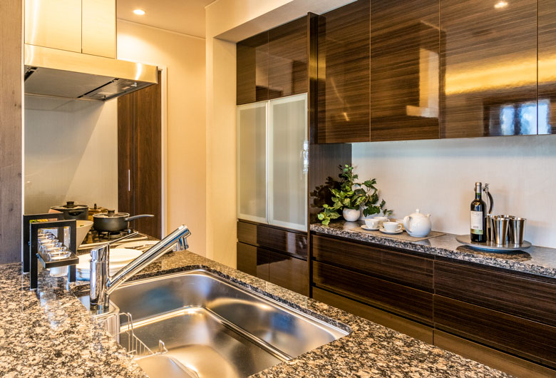 グッドデザイン賞を受賞した高いデザイン性。高品質を追求した室内空間にはセラミックストーンを採用したオリジナルキッチン。快適で安心な住まいをご提供します。