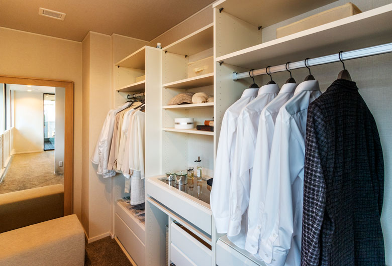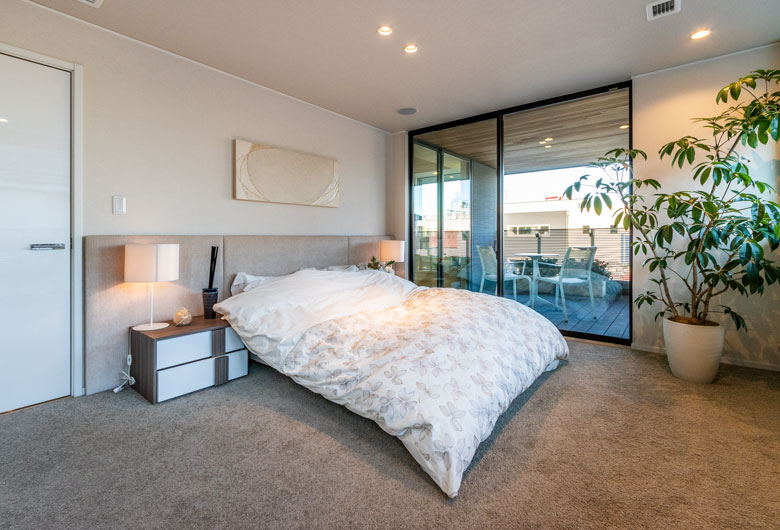深い軒による美しい陰影と、水平ラインがつくるシャープで洗練された外観。年月とともに味わいを増す天然木が落ち着いた印象を与えます。寝室とバルコニーは床と軒がフラットに繋がっており、バルコニーが部屋の一部のように寝室と一体感覚で使うことができます。住友不動産ハウジングでは総合ディべロッパーという強みを活かし、リーズナブルな価格で実際に高級マンションシリーズで使用しているハイグレードな室内装を戸建住宅に取り入れる「レジデンシャルスタイル」を開発、「J・レジデンス」の標準仕様に採用しました。