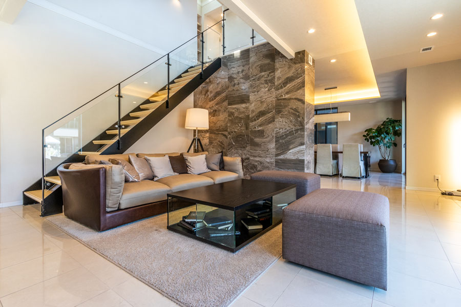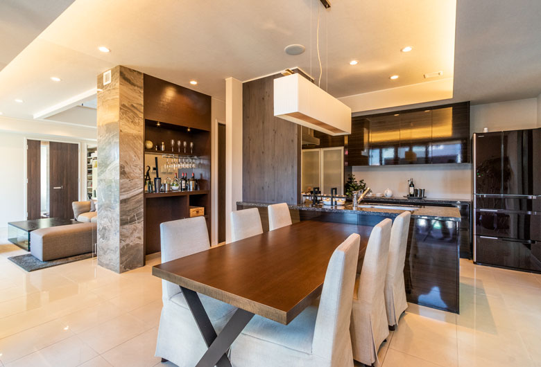 グッドデザイン賞を受賞した高いデザイン性。高品質を追求した室内空間にはセラミックストーンを採用したオリジナルキッチン。快適で安心な住まいをご提供します。