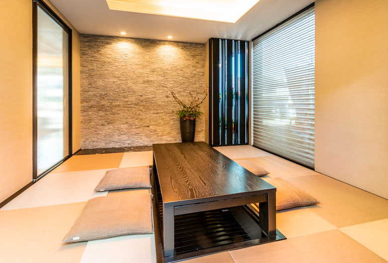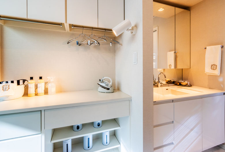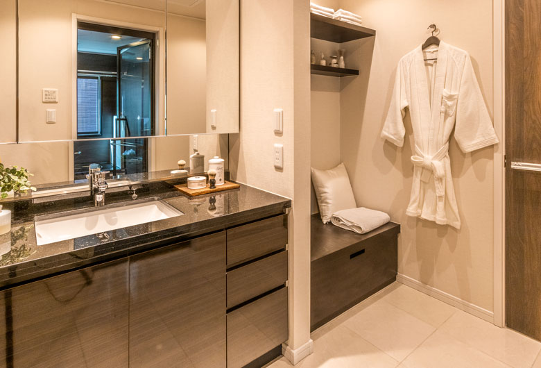 深い軒による美しい陰影と、水平ラインがつくるシャープで洗練された外観。年月とともに味わいを増す天然木が落ち着いた印象を与えます。寝室とバルコニーは床と軒がフラットに繋がっており、バルコニーが部屋の一部のように寝室と一体感覚で使うことができます。住友不動産ハウジングでは総合ディべロッパーという強みを活かし、リーズナブルな価格で実際に高級マンションシリーズで使用しているハイグレードな室内装を戸建住宅に取り入れる「レジデンシャルスタイル」を開発、「J・レジデンス」の標準仕様に採用しました。