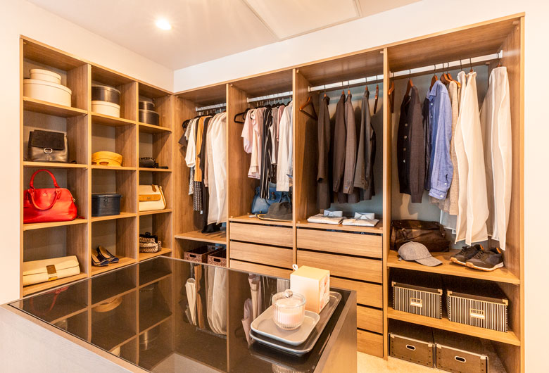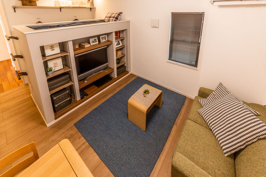 Point3 付かず離れず、家族の距離感を考えた空間構成と家事動線や収納、癒し空間など女性目線の生活空間提案。