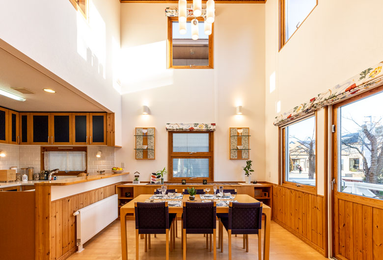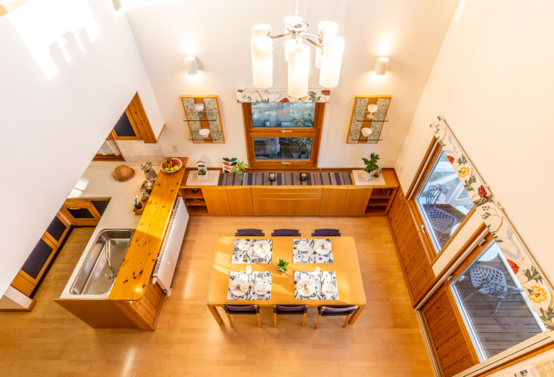 開放的なリビングダイニングからウッドデッキに広がるスペースがゆとりと安らぎを与えます。3世帯住宅対応型で、健康で快適に暮らせる安心設計です。オーソドックスな北欧スタイル、ブリティッシュスタイル、和風スタイルなどお客様のイメージに合わせたインテリア空間をご用意しております。(※2015~2025年 オリコン顧客満足度🄬調査 ハウスメーカー 注文住宅 11年連続第1位)