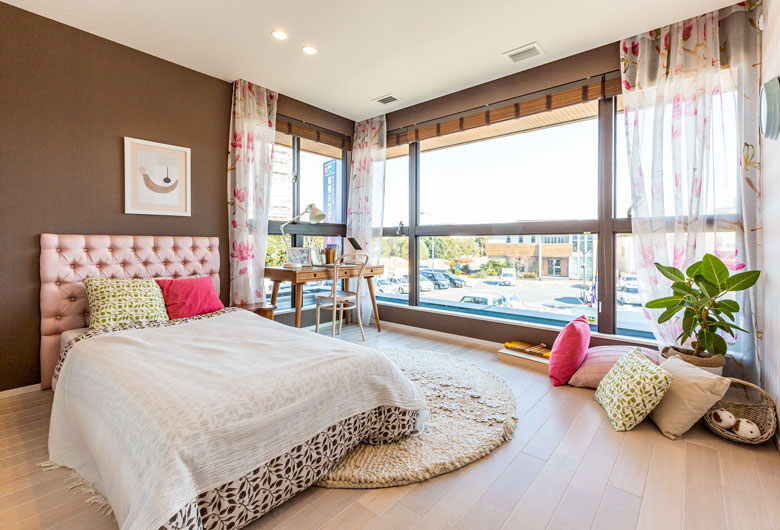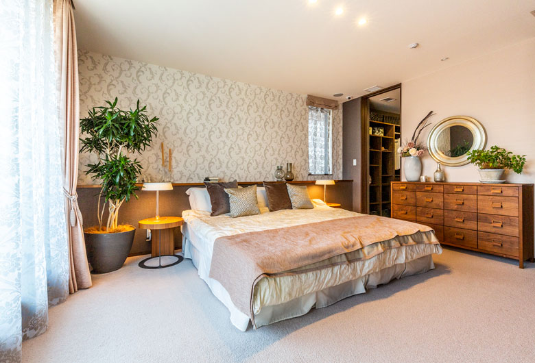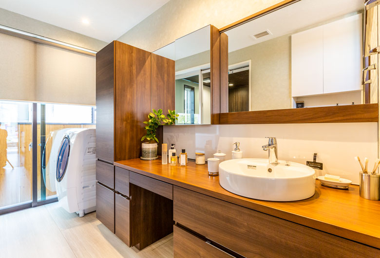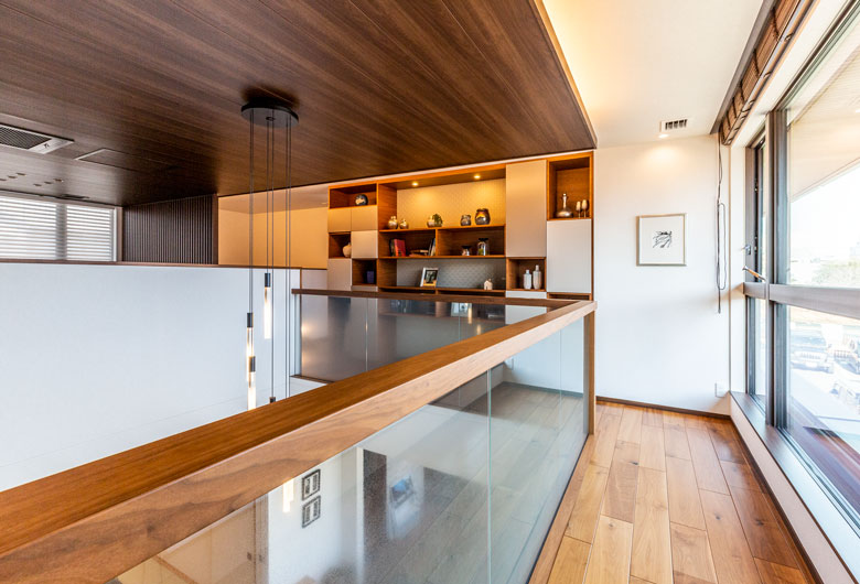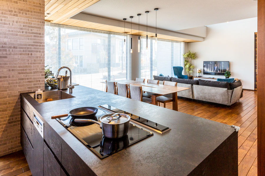住友林業オリジナル『ビッグフレーム構法』による大開口、大空間が開放感と明るさを、ウォルナットの無垢床や木質天井を使用し木質感豊で且つ高級感のある上質な空間を実現。設計の自由度やオリジナルの収納部材等を活用し、家事効率に配慮した間取りとなっております。重量鉄骨に匹敵する圧倒的な耐震性、高耐久なご提案でメンテナンス費用も抑え、長期保証によりご家族が長く安心して快適にお住まいいただける家をご提供致します。そして、木のやすらぎとぬくもりにつつまれる心地よさで、ご家族が暮らす住まいを豊かに彩ります。