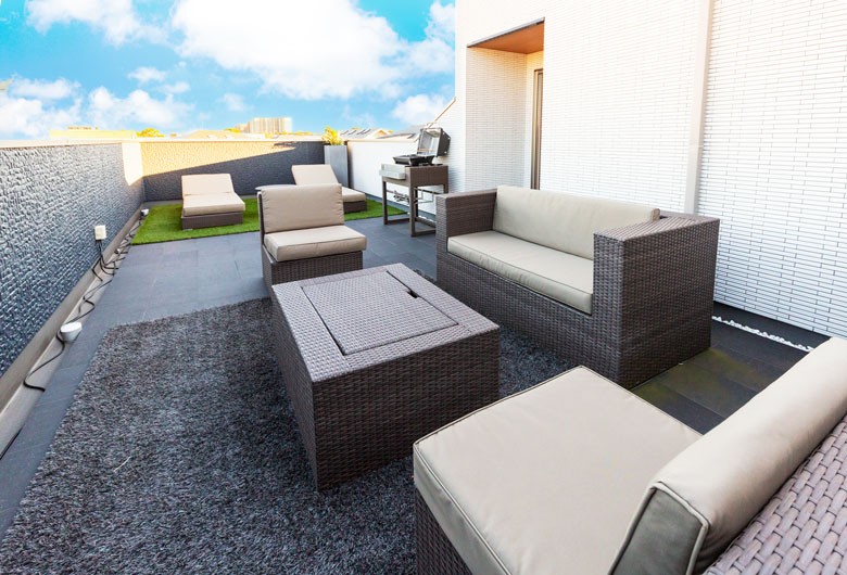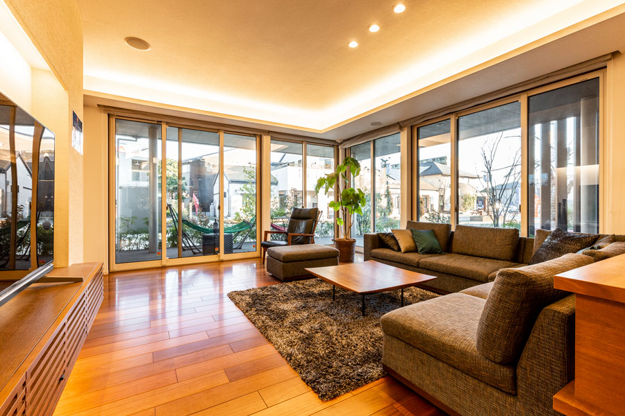 家族の遊び場"アクティブガレージ"と屋上庭園"青空リビング"でゆとりを愉しむ。