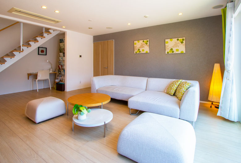 シンプルなラインを意識したスタイリッシュな佇まい。室内は、デザインと機能性を兼ね備えた住宅設備で美しくまとめられています。大きな窓のある大空間設計のリビングは、明るく開放的。和室は、洋風の空間にも似合うモダンなデザインです。さらに、業界トップレベルの気密・断熱性能に加え、全館床暖房を標準とした充実の仕様。性能も設備もデザインも、全てにスマートさを追求したスマートデザイン住宅です。
