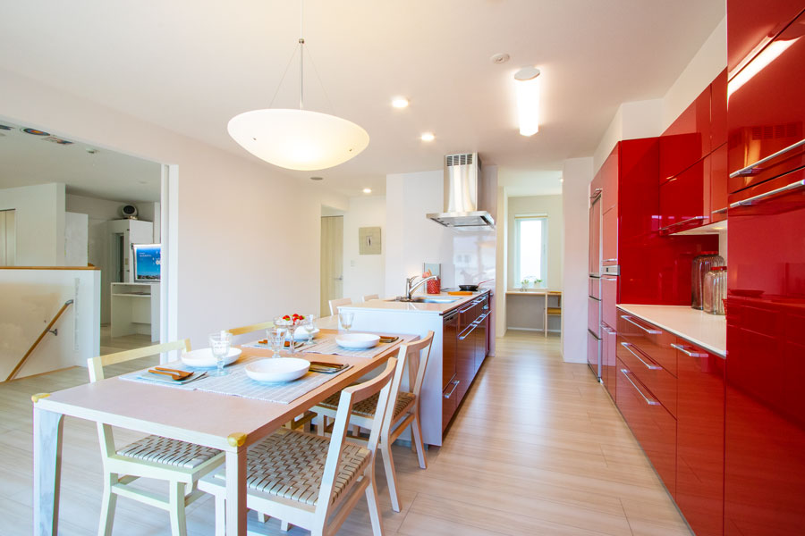 シンプルなラインを意識したスタイリッシュな佇まい。室内は、デザインと機能性を兼ね備えた住宅設備で美しくまとめられています。大きな窓のある大空間設計のリビングは、明るく開放的。和室は、洋風の空間にも似合うモダンなデザインです。さらに、業界トップレベルの気密・断熱性能に加え、全館床暖房を標準とした充実の仕様。性能も設備もデザインも、全てにスマートさを追求したスマートデザイン住宅です。