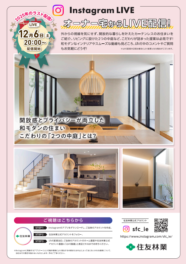 ■12/13(土)14(日) LIVE配信でご紹介したお住まいを、実際に体感できる見学会を開催!!