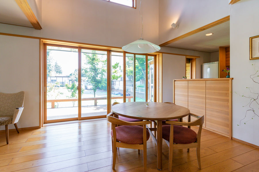 一般的に、モデルハウスは見せるためにつくられているため、現実とかけ離れてしまっていて参考になりにくいものです。四季工房三鷹展示場はあくまで実生活に即した間取りと仕様を心がけました。程よい広さのリビングダイニング。2階に畳のゲストルームを備えたつくりから、庭と一体になったビルトインガレージなど新提案も盛り込んでいます。内外ともに無垢の木を十分に使用し、穏やかな心地良さにあふれています。