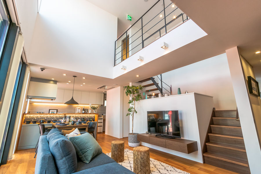 テレワーク対応/吹き抜け/ZEH対応/床暖房/スキップフロア/こだわり収納/らくらく家事動線/小屋裏収納/リアルサイズ