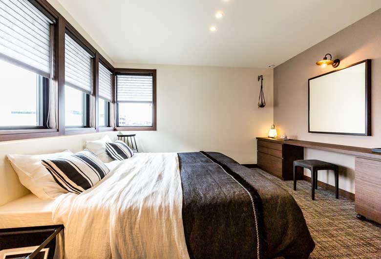 上品でモダンな内装・デザインとなっています。近年、注目されているカフェのような落ち着きのある空間を表現しています。モノトーンな色調の置き家具をベースに、濃淡様々な木質感を是非ご覧ください。
