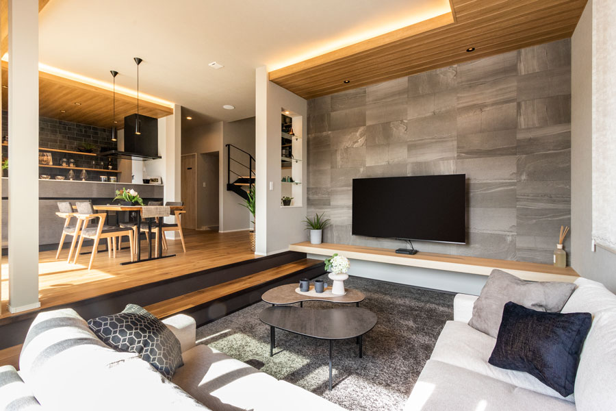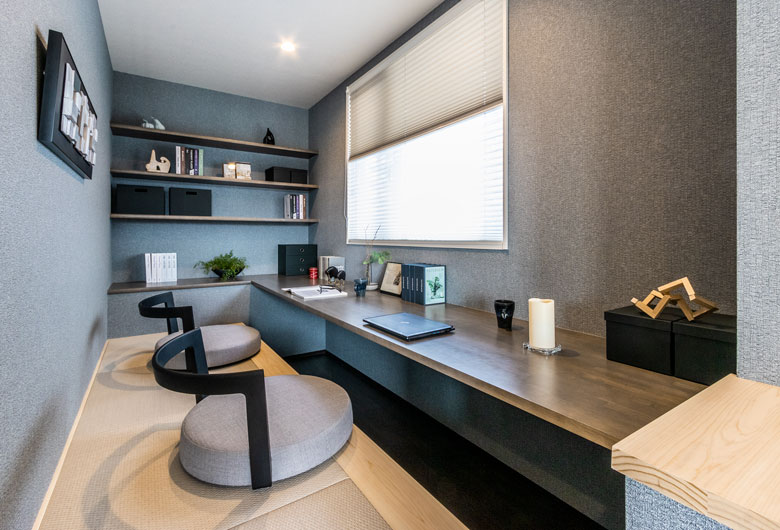 家族みんなが心地良いくつろぎの体感できる展示場となります。外観はシックでダンディに室内はお洒落なカフェ風テイストでナチュラルの木の温もりを感じられます。ダウンフロア効果による大空間リビング、秘密基地の様なスキップフロア階段、家事同線やウィルス対策も意識した生活スタイルにリモートワーク対応のくつろぎ和モダン書斎、ゆとりのある広々インナーバルコニー等、是非タマホーム千葉北店にてご体感ください!