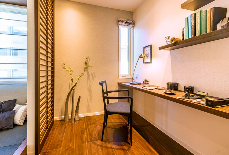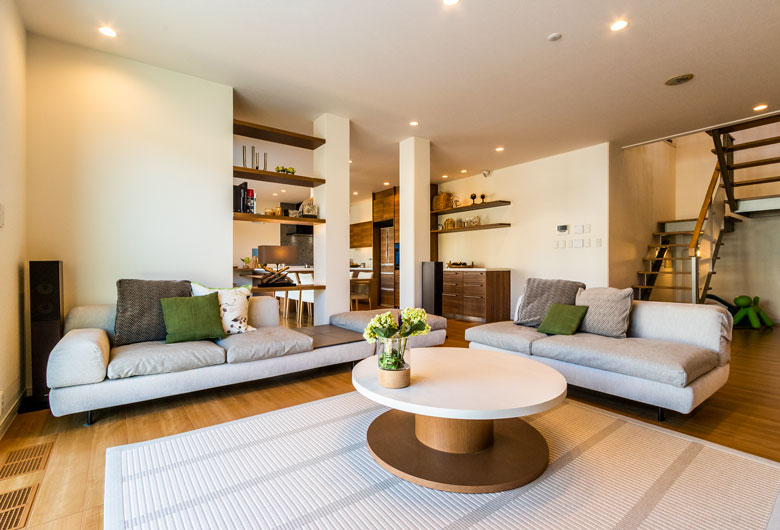 家族それぞれが自分らしく過ごせる空間と家族みんなが集える快適な空間、美しく配置された収納も整えた住まいです。