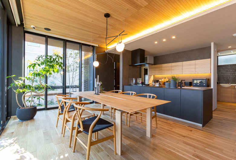 角地という立地を活かした『ビッグフレーム構法』ならではの大開口による開放的な空間