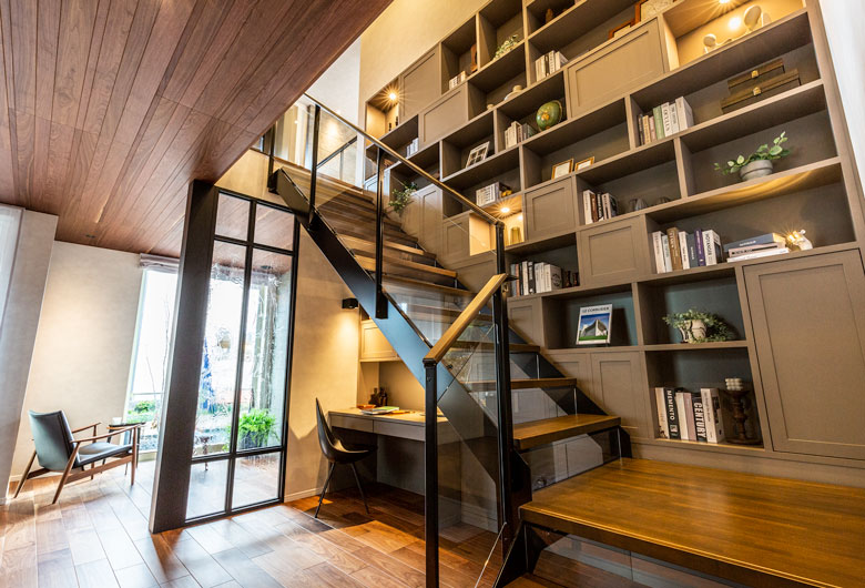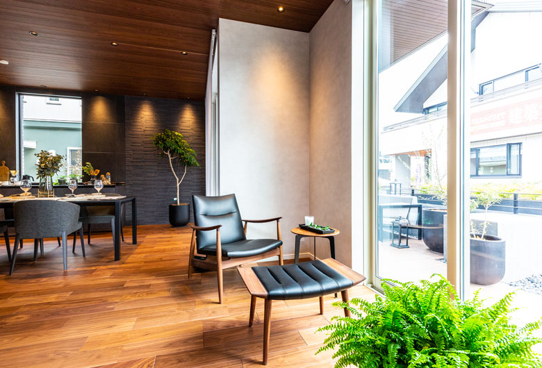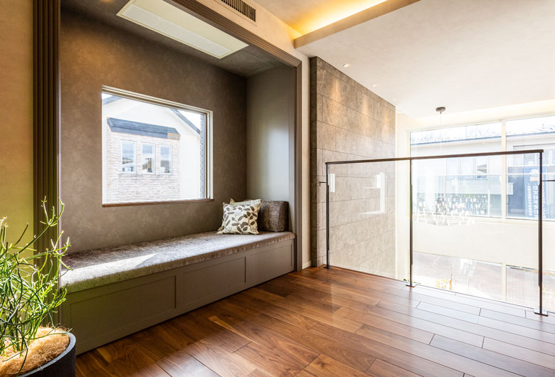 3つの“繋がり”のある暮らし「職住融合」で現代の働き方や生活スタイルをご覧頂けます。今回ご紹介するのは「ヌック」です。ヌックとはスコットランド語で「ちょっとしたスペースを活用した居心地のいい空間」読書やのんびり過ごすスペースとなっており、全館空調「エアロハス」も体感しながら是非、ヌックもご体感下さい。