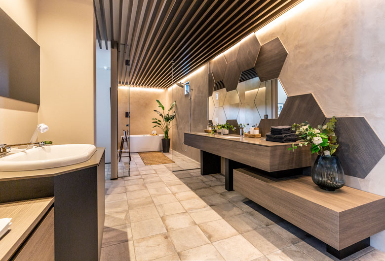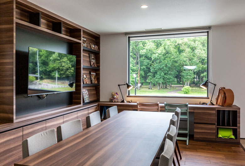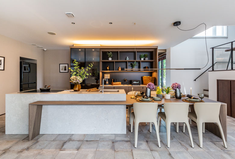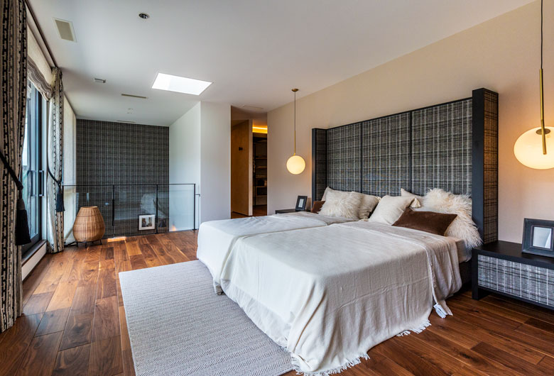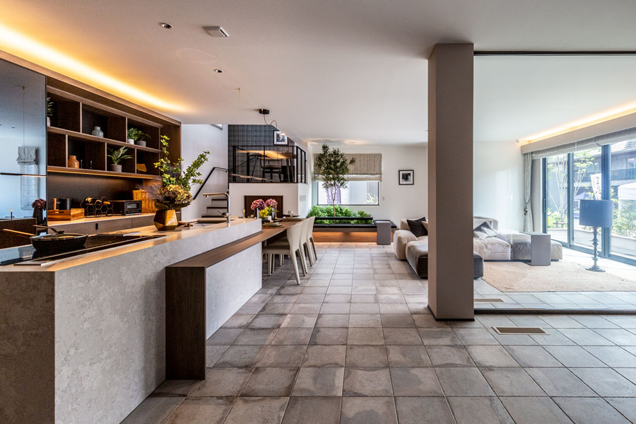 【クルマと家、家族の絆がつながる住まい】がコンセプトで、リゾートホテルのような上質な空間となっております。夏でも冬でも、家中どこにいても心地よさを実感できる全館空調『スマート・エアーズPLUS』や停電時にクルマから家に給電できる『クルマde給電』を装備しており、快適な住まいをご体感いただけます。