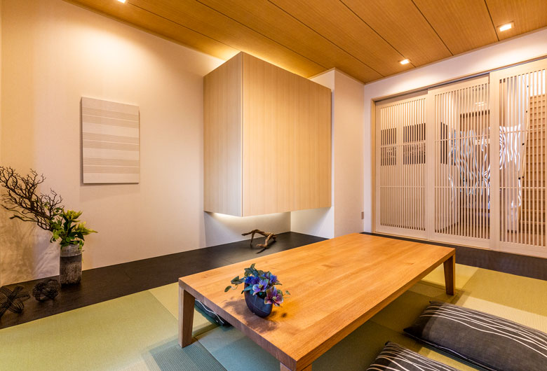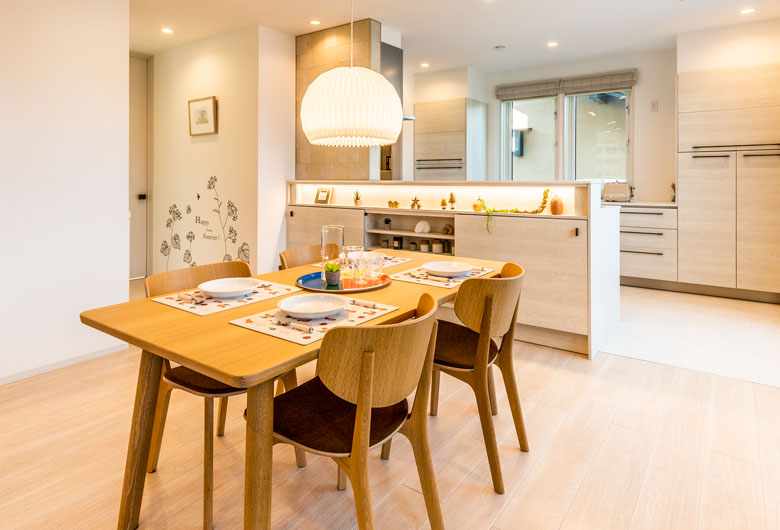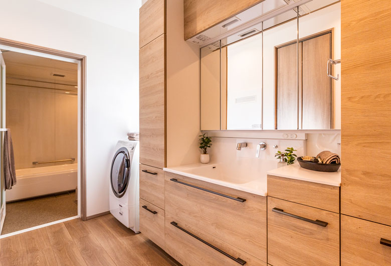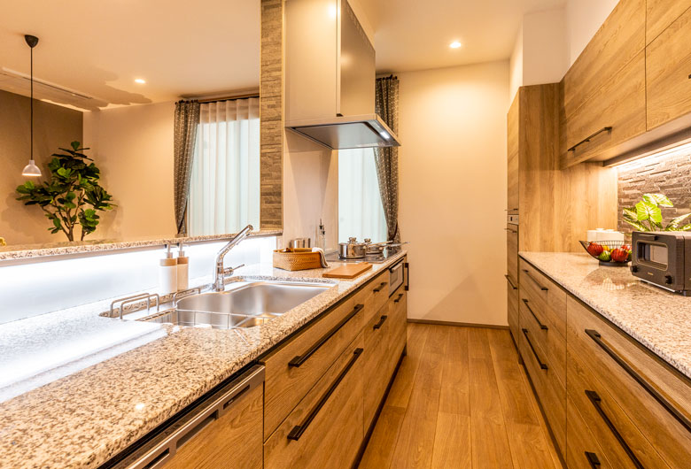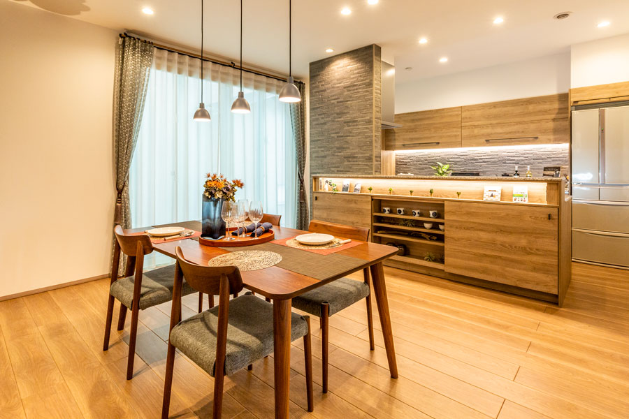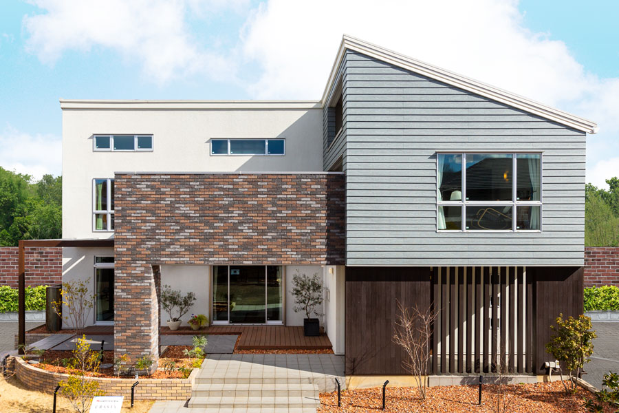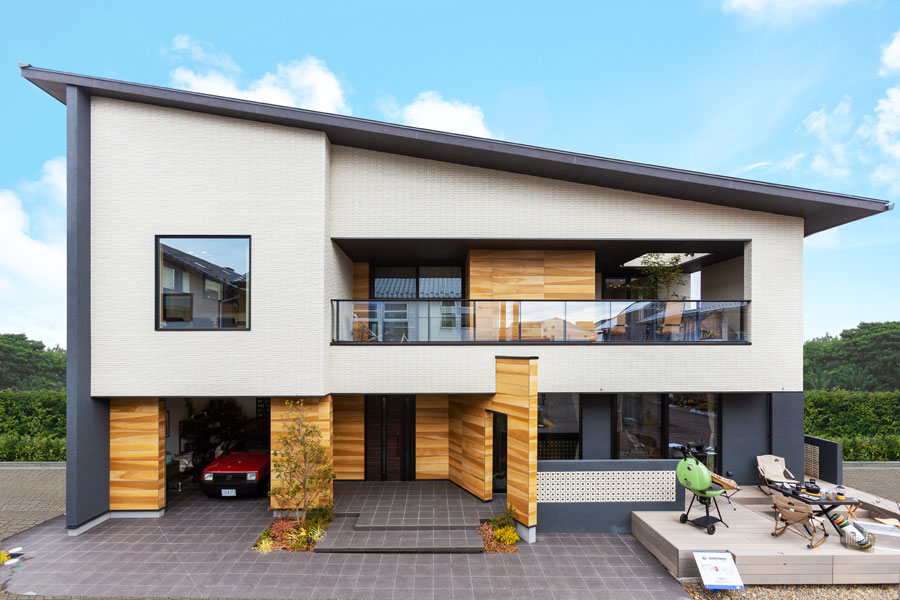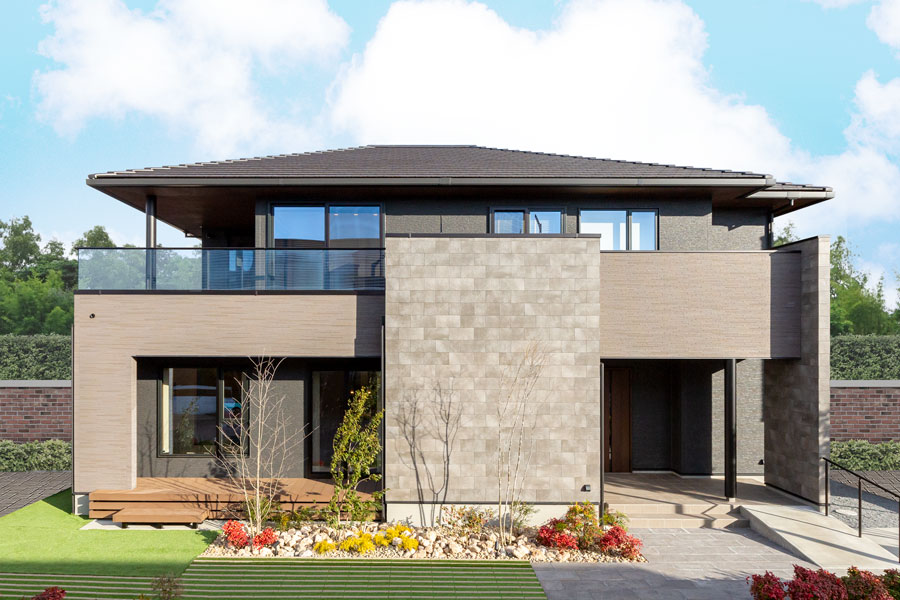 選べる4つのインテリアスタイルを軸に、理想の空間を叶える「グラン・セゾン」。全面タイル外壁にアクセントを添えるパラペットルーフやルーバーなど、エクステリアも圧倒的な存在感を放ちます。さらに、この商品のためにデザイン・設計された、キッチンやドレッサー、収納などの数々の住宅設備は、まさに“機能美”を体現したもの。一条の性能と上質なデザインが融合した、“ここに住む喜び”を存分に感じられる邸宅です。