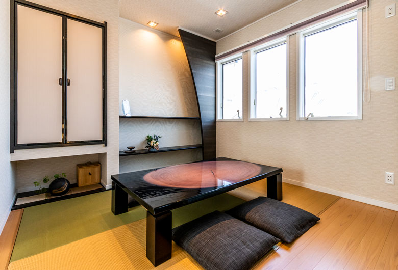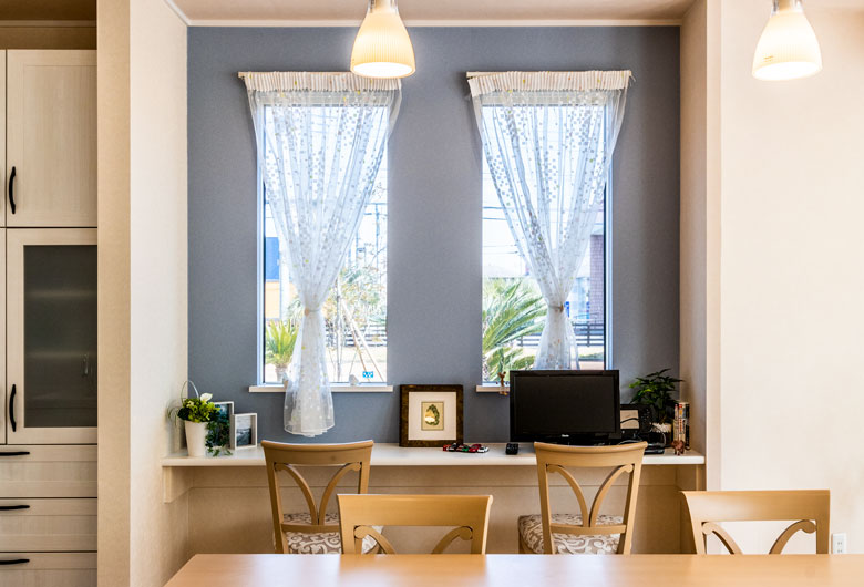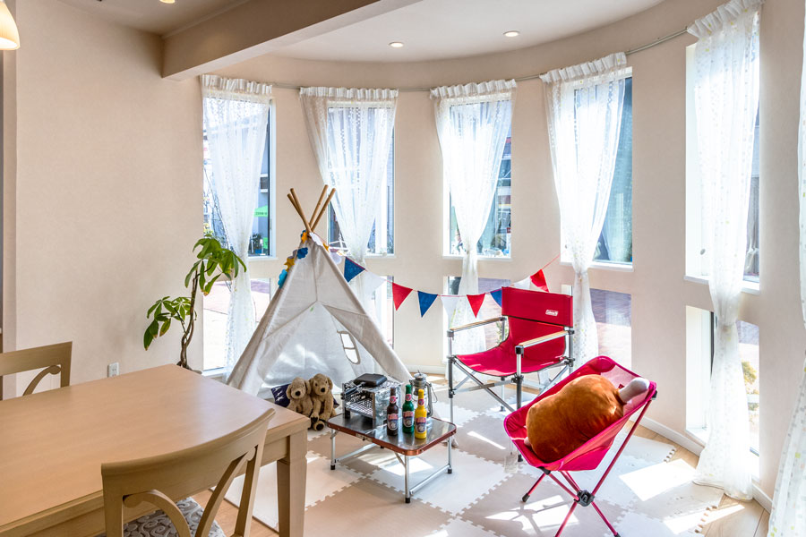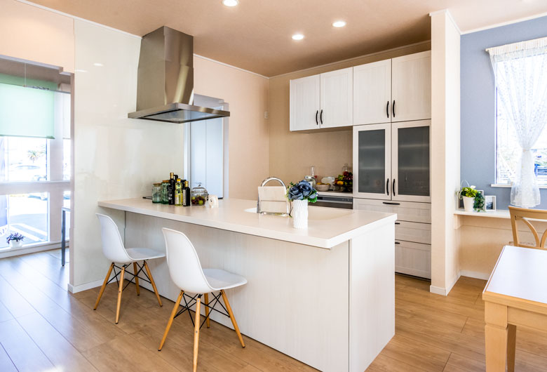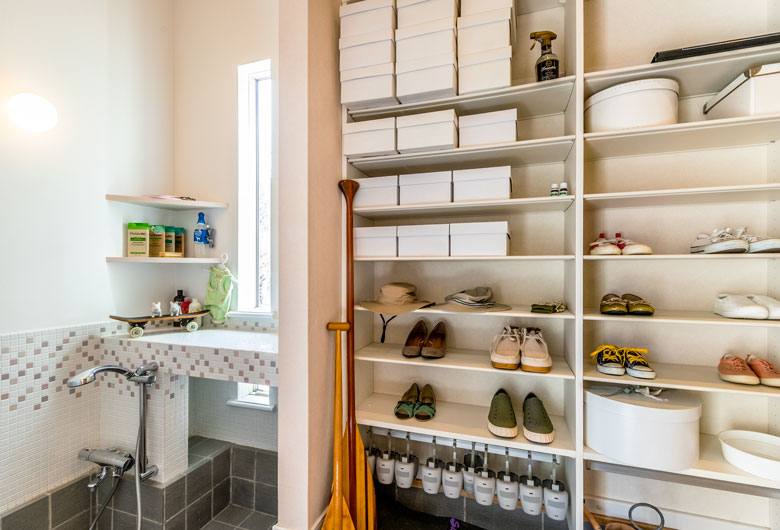 1階玄関横にあるシャワースペースは、家庭菜園や散歩後のペットの足を洗ったりアウトドア派にも人気です。180度の光の取り込みを可能にしたRリビングは、抜群の陽だまりの癒し空間で家族の絆も深まる予感。解放感溢れる吹き抜け、なのにお財布にやさしい。(光熱費を抑える空間を実現しました)踊り場を有効活用した省スペースでリモートワークもできちゃいます。家事に必須の生活動線を重視したキッチン周りは、嬉しい楽々家事(ララカジ)で時間の有効活用につながります。