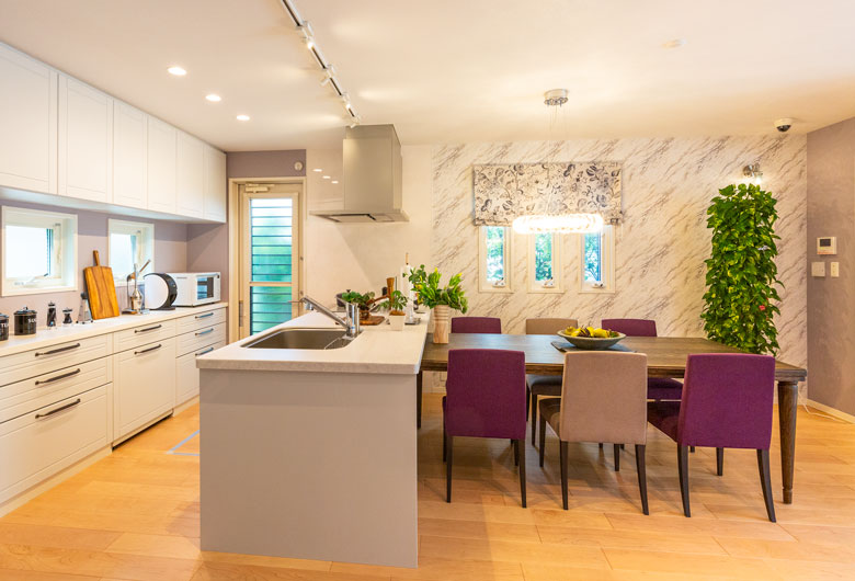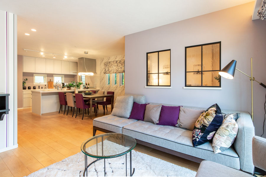 異なるライフスタイルを優しくつなげ、暮らしの可能性を広げる都市型住宅。モダンな空間にエレガントな雰囲気をミックス。 カジュアルにもフォーマルにも設えしてあるインテリアが特徴です。 首都圏で多い都市型3階建住宅をリアルサイズで演出しながら、ゆったり生活できる単世帯住宅・二世帯住宅としてのご案内が可能です。セキスイハイム独自の工場生産と全館空調により、一年中快適で安心して暮らしていただける住まいとなっております。