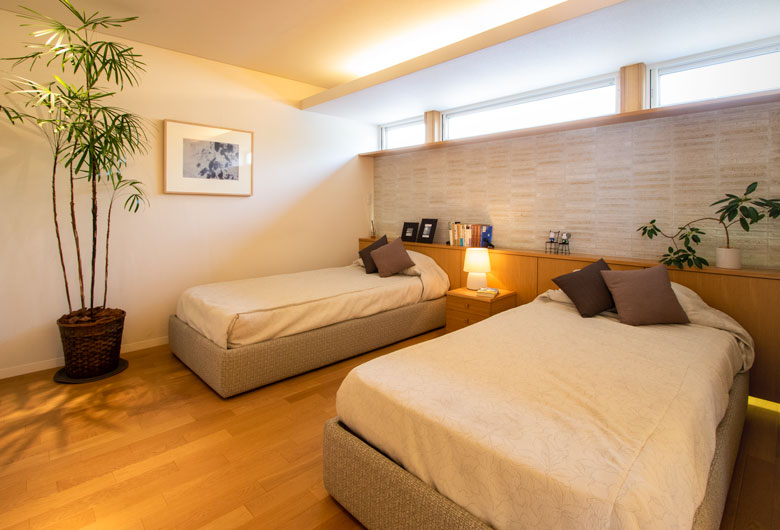・独自開発の木質パネル接着工法だからできる、「南極昭和基地建築」や階数・容積率に算入されない大収納空間「蔵」、「高天井設計」は構造躯体の歪みにくさを生かしたミサワホームの特徴です。