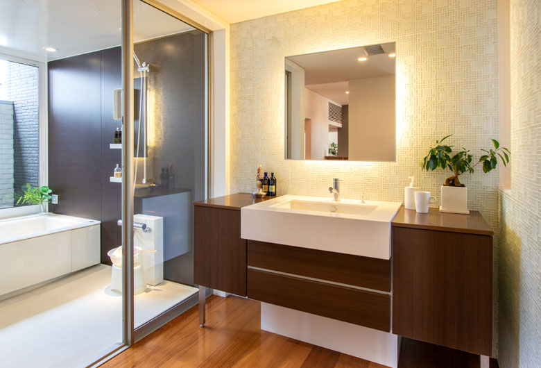ホームエレベーター/テレワーク対応/吹き抜け/ZEH対応/IoT対応/床暖房/スキップフロア/こだわり収納/3m高天井リビング/大収納空間「蔵」/外壁「タイル張り」