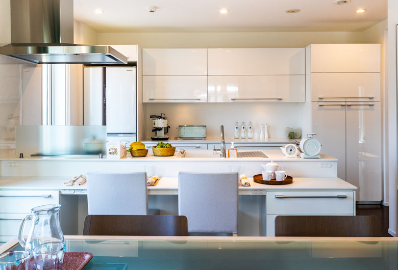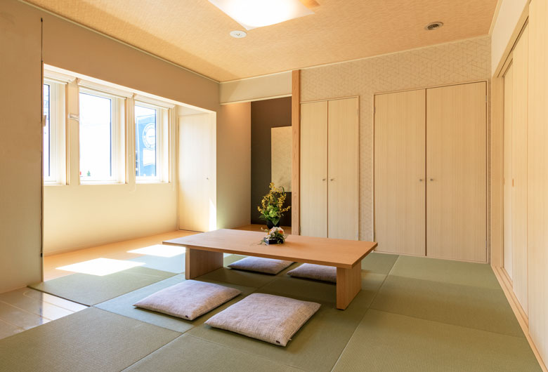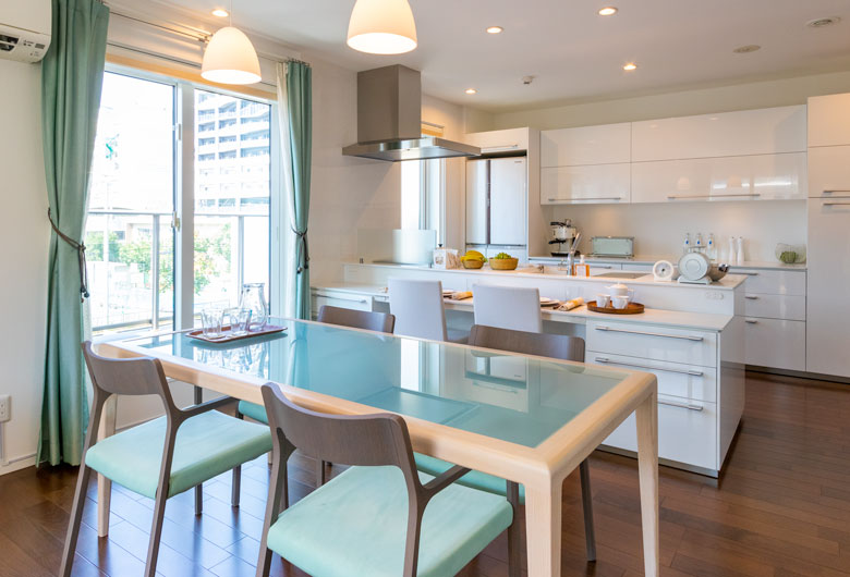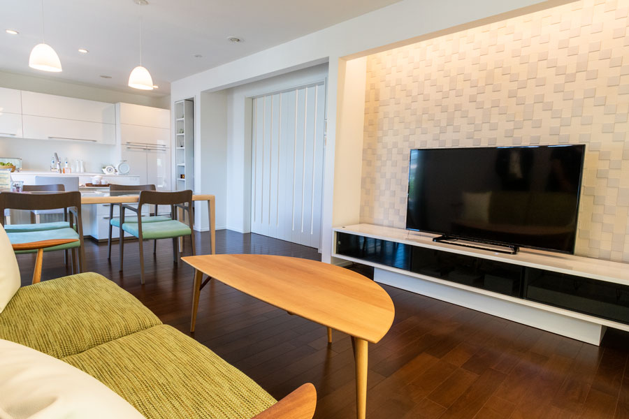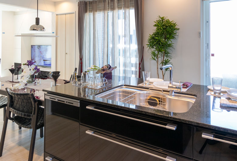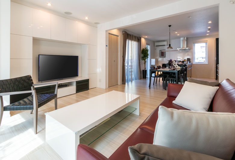 1階には御影石のカウンタートップが美しいキッチン、3連の窓から明るい光が差し込むスタイリッシュな印象のリビングを。2階には美しい床の間を備えた本格的な和室と近隣からの視線を遮りつつ外の解放感を満喫できるルーフガーデン。そして3階にはホワイトのキッチンが印象的なカジュアルなLDKと1日の疲れを癒やしてくれる落ち着いた雰囲気の主寝室をご用意いたしました。一条工務店ならではの、夏は涼しく冬は春のように暖かい全館床暖房も併せてぜひご体感ください。