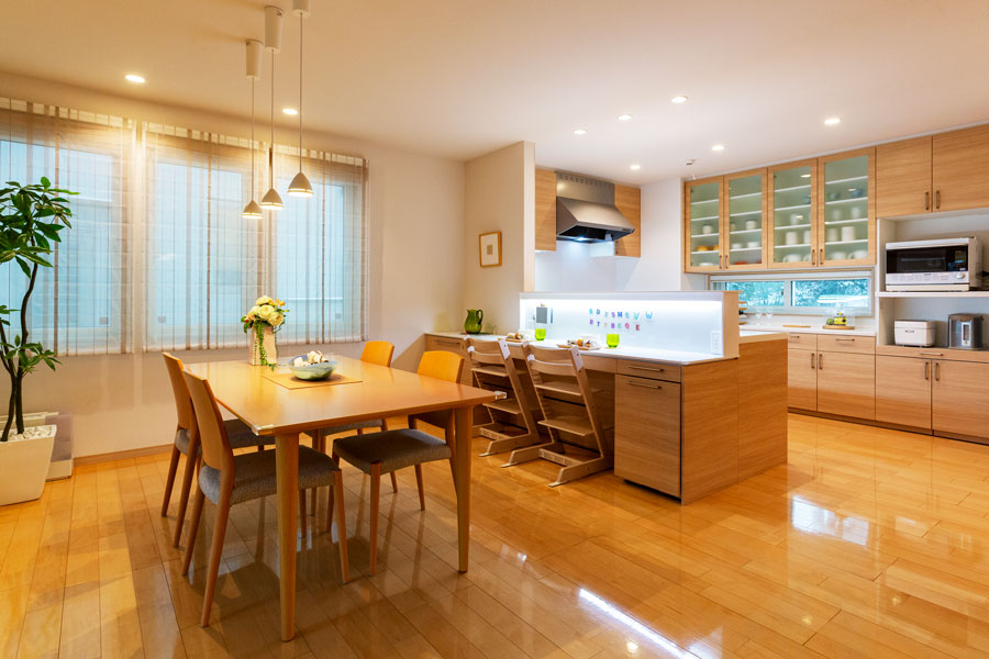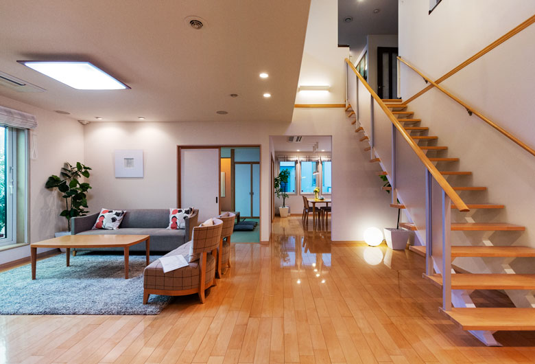 「i-cube」の「i」は私。「c」はcomfort=快適さ、「u」はusability=使いやすさ、「b」はbenefit=家計へのやさしさ、「e」はecology=環境へのやさしさ。4つの想いで「i=住まう人」を支える、i-cubeのアイデンティティ。厳冬の冬も、高湿度の夏も、まるで外の世界を遮断したような心地よさ。朝の目覚め、家族との団欒、お休み前のひととき、すべてのシーンに極上の心地よさを。超・高性能住宅『アイキューブ』