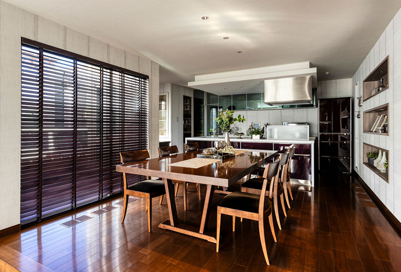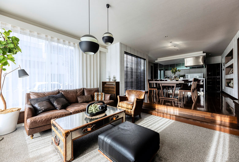 高級感を演出するボルドーブラックのタイルの外観に、広さ×高さで叶える“3階建て”“二世帯”住宅です。ダウンフロアであそびごころのある1Fリビング。視界が抜け広がりを感じることができます♪大きな窓を開け放ったら風が心地よいアウトドアリビングで家族とグランピング気分を味わえます♪ホームエレベーター搭載で将来のシニアライフや家事子育ての利便性も重視した間取りになっております。独自の空調システムで“1年じゅう、さわやかで春のように心地いい”空間が実現したワンランク上の暮らしを演出しました。