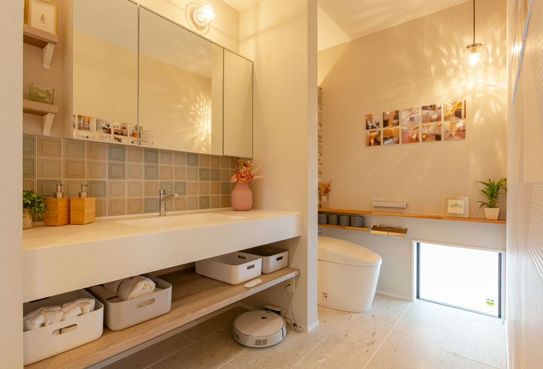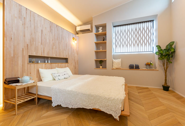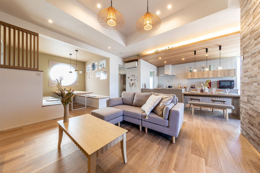 セナリオ檜HB+高断熱仕様warm vita plus(ウォーム・ヴィータ プラス)を採用したモデルハウスで、住宅設備や性能面も見て触れて体感いただけます。さらにボタニカルスタイルやフェミニンスタイルなど様々なテイストのお部屋も見比べていただくことが可能です。