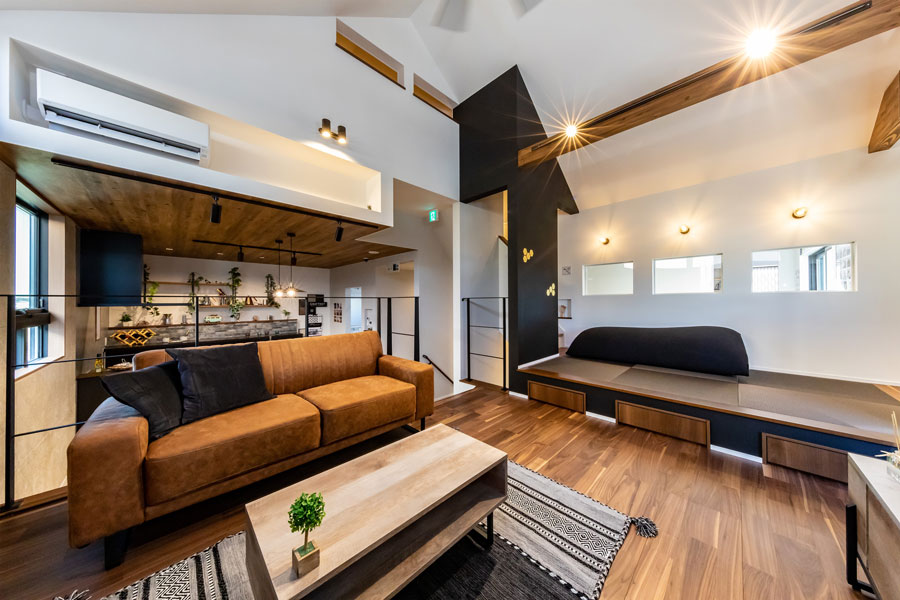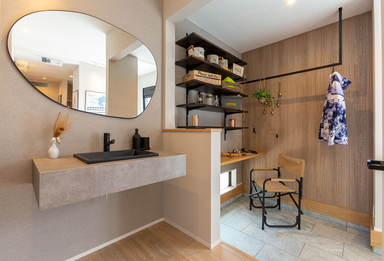 自然素材を活かしたやわらかなデザイン、女性に人気のアースカラー・くすみカラーで統一された42坪ナチュラルモダン棟と、男ゴコロをくすぐるインダストリア風のガレージや蔵を設けた32坪アメリカン棟が体感いただけます。