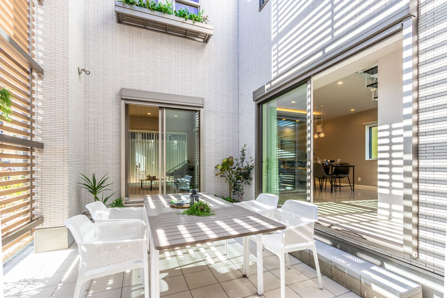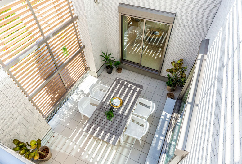 屋上庭園"青空リビング"とリビングダイニングから続く"パティオ"で上質を愉しむ