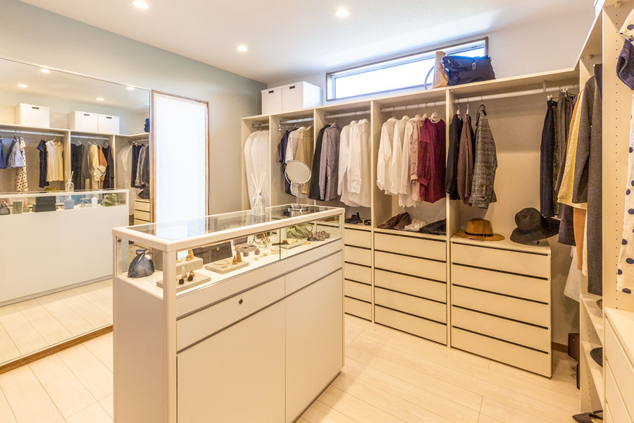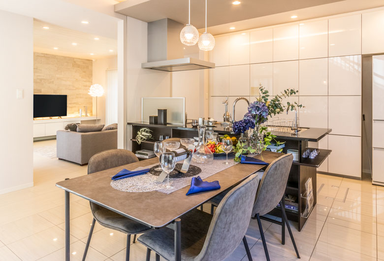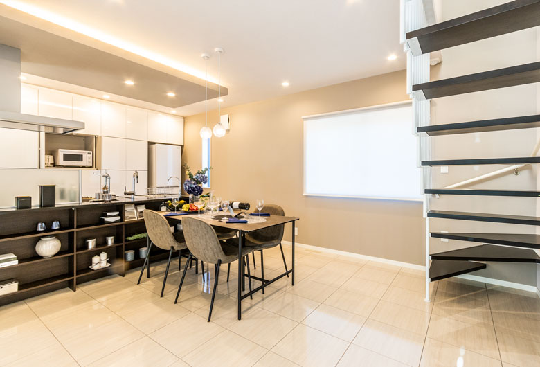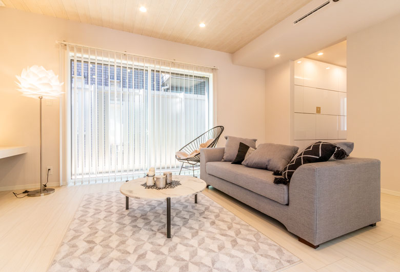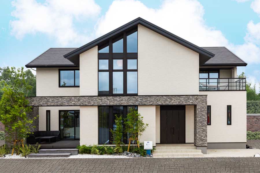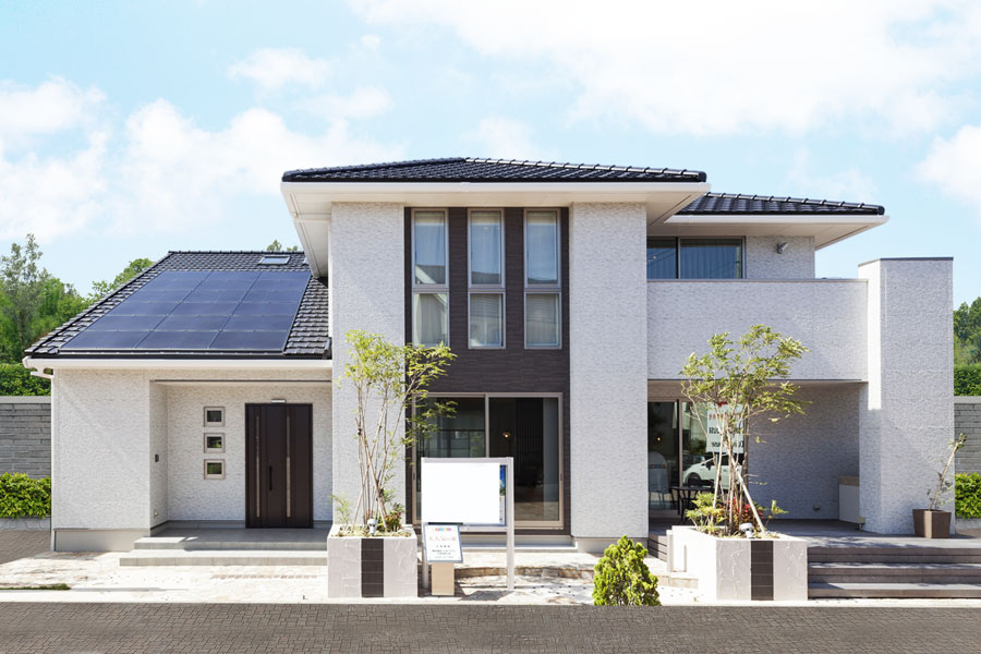 スクエアでスッキリしたデザインとアクセント格子が印象的な外観。建物の中心に設けられたパティオは周囲からの視線を遮りプライバシーを守る特別な空間です。さらに屋上の青空リビングはよりプライベートで使いやすい空間を実現。大切な人と開放的な時間を過ごせます。2階のブティッククローゼットは家族分の大容量の収納に全身鏡のあるフィッティングスペースを設計。これから始まるマイホームづくりと新生活をより豊かにするための具体的なアイデアがたくさん詰まった展示場を楽しみながらゆっくりと体感してください。