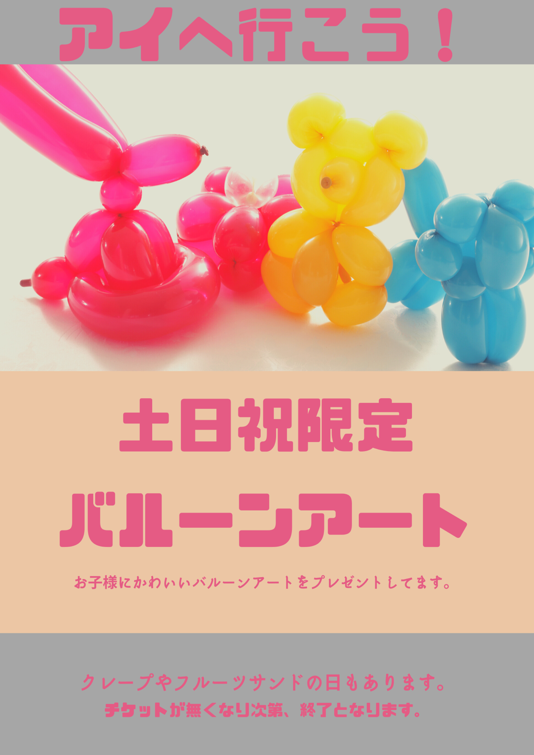 バルーンアーティストが、お子様にかわいい風船をプレゼントしています。みなさまのご来場を心よりお待ちしております!