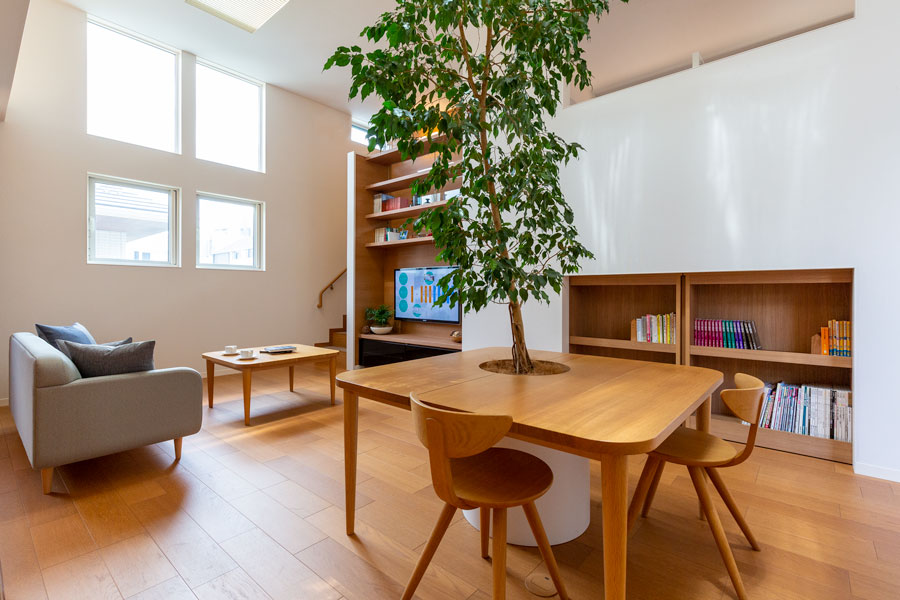 ・【2.5階建スキップフロア】&【3.5m高天井のTATEデザインを活かしたLDK空間】